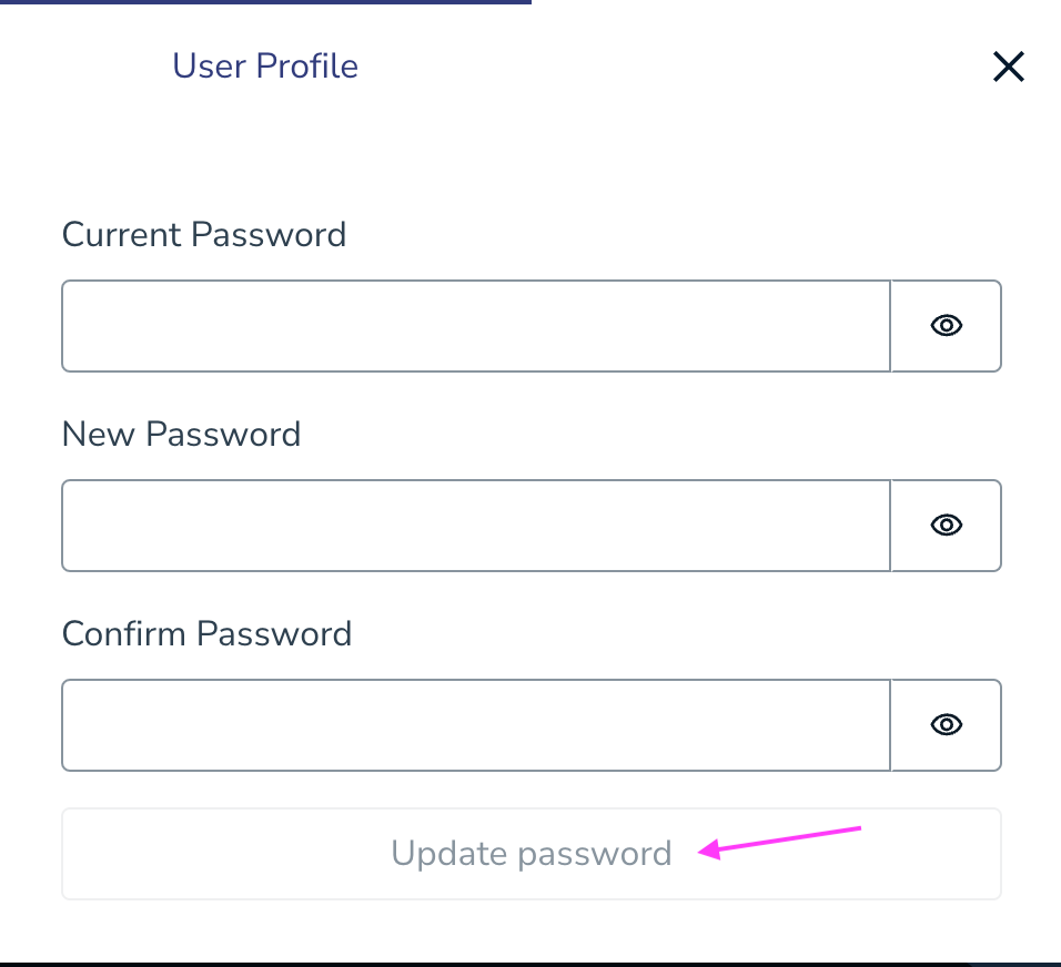 - Enter your current password, and then create a new password. Confirm your new password and then click the "Update password" button.